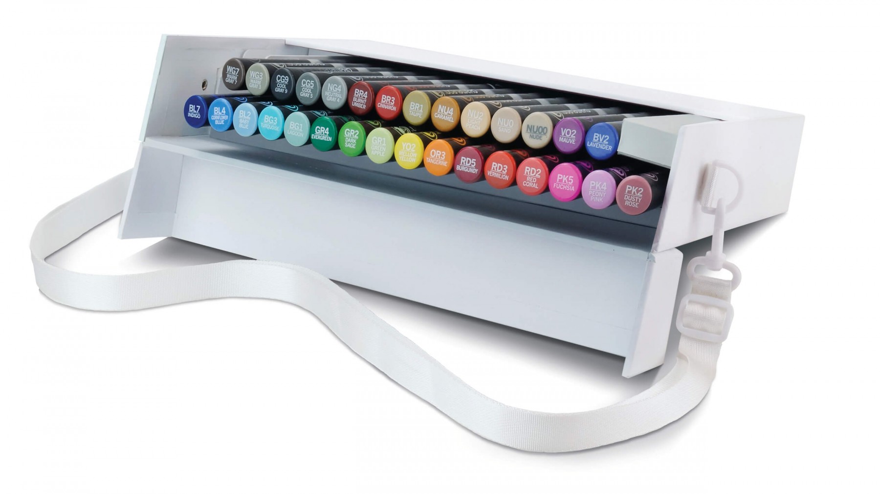 30 Chameleon Pens:PK2 Dusty Rose, PK4 Peony Pink, PK5 Fuchsia, RD2 Red Coral, RD3 Vermilion, RD5 Burgundy, YO2 Mellow Yellow, OR3 Tangerine, GR1 Green Apple, GR2 Dark Sage, GR4 Evergreen, BG1 Lagoon, BG3 Turquoise, BL2 Baby Blue, BL4 Cornflower, BL7 Indigo, BV2 Lavender, VO2 Mauve, BR1 Taupe, BR3 Cinnamon, BR4 Burnt Umber, NU00 Nude, NU0 Sand, NU2 Light Peach, NU4 Caramel, WG3 Warm Gray 3, WG7 Warm Gray 7, NG4 Neutral Gray 4, CG5 Cool Gray 5, CG9 Cool Gray 9.