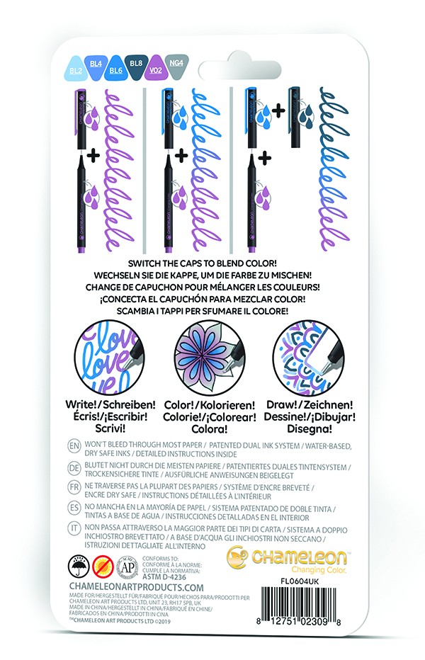 Contains 6 Chameleon Fineliner pens that create 16 color blending combinations