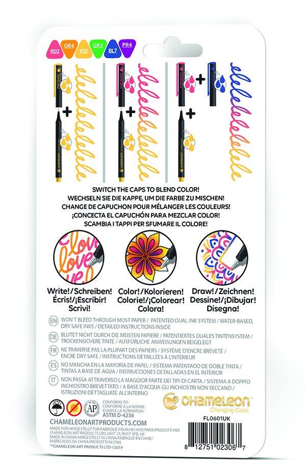 Contains 6 Chameleon Fineliner pens that create 16 color blending combinations