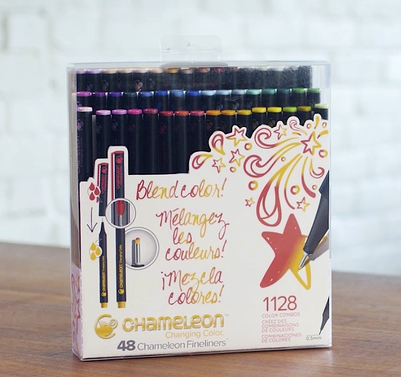 Chameleon Fineliners have a patented dual ink system, with ink in the pen and in the cap! To instantly blend colors all you have to do is switch the cap, or hop the top to another pen, leave it a few seconds and make vibrant color to color blends! Write, draw and color like no other! Ideal for writing, coloring, doodling, and drawing. Perfect for bullet journals and planners as the ink won’t bleed through most papers. Features a fine point Japanese precision 0.3mm metal-clad tip for super smooth writing performance. Ergonomic design. Water-based, dry safe ink. Won’t bleed through most papers Contains 48 Chameleon Fineliner pens that create over 1000 color blending combinations PK2 Dusty Rose PK3 Bubble Gum PK4 Peony Pink PK5 Fuchsia RD2 Red Coral RD3 Vermillion RD4 Crimson Red RD5 Burgundy OR3 Tangerine OR4 Seville Orange YO2 Mellow Yellow YO3 Warm Sunset YL2 Summer Sun YG3 Spring Meadow OL3 Olive Green GR1 Green Apple GR2 Dark Sage GR3 Grass Green GR4 Evergreen BG1 Lagoon BG3 Turquoise BG4 Aqua Marine BL2 Baby Blue BL3 Sky Blue BL4 Cornflower Blue BL6 Royal Blue BL7 Indigo BL8 Slate Blue BV2 Lavender VO2 Mauve VO3 Plum VO4 Deep Violet BV4 Blue Violet PR4 Purple Grape NU0 Sand NU1 Bisque NU2 Light Peach NU3 Fawn NU4 Caramel BR1 Taupe BR2 Hot Cocoa BR3 Cinnamon BR4 Burnt Umber BR5 Bark NG4 Neutral Grey CG8 Cool grey WG3 Warm Grey BK4 Deep Black - Stockists