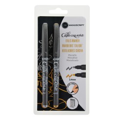 2 Callicreative Metallic Italic Markers with a 2.4mm nib - Silver and Gold