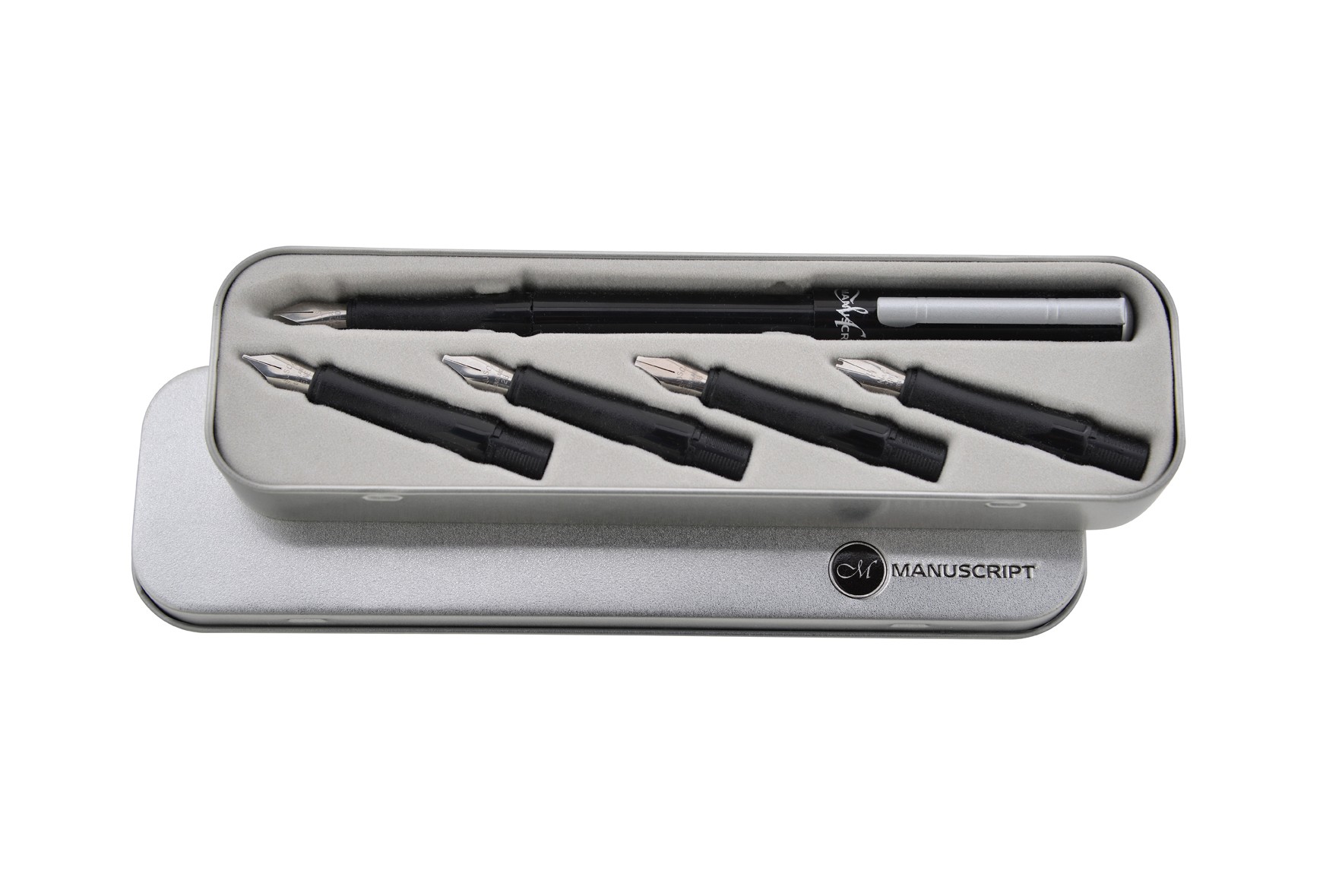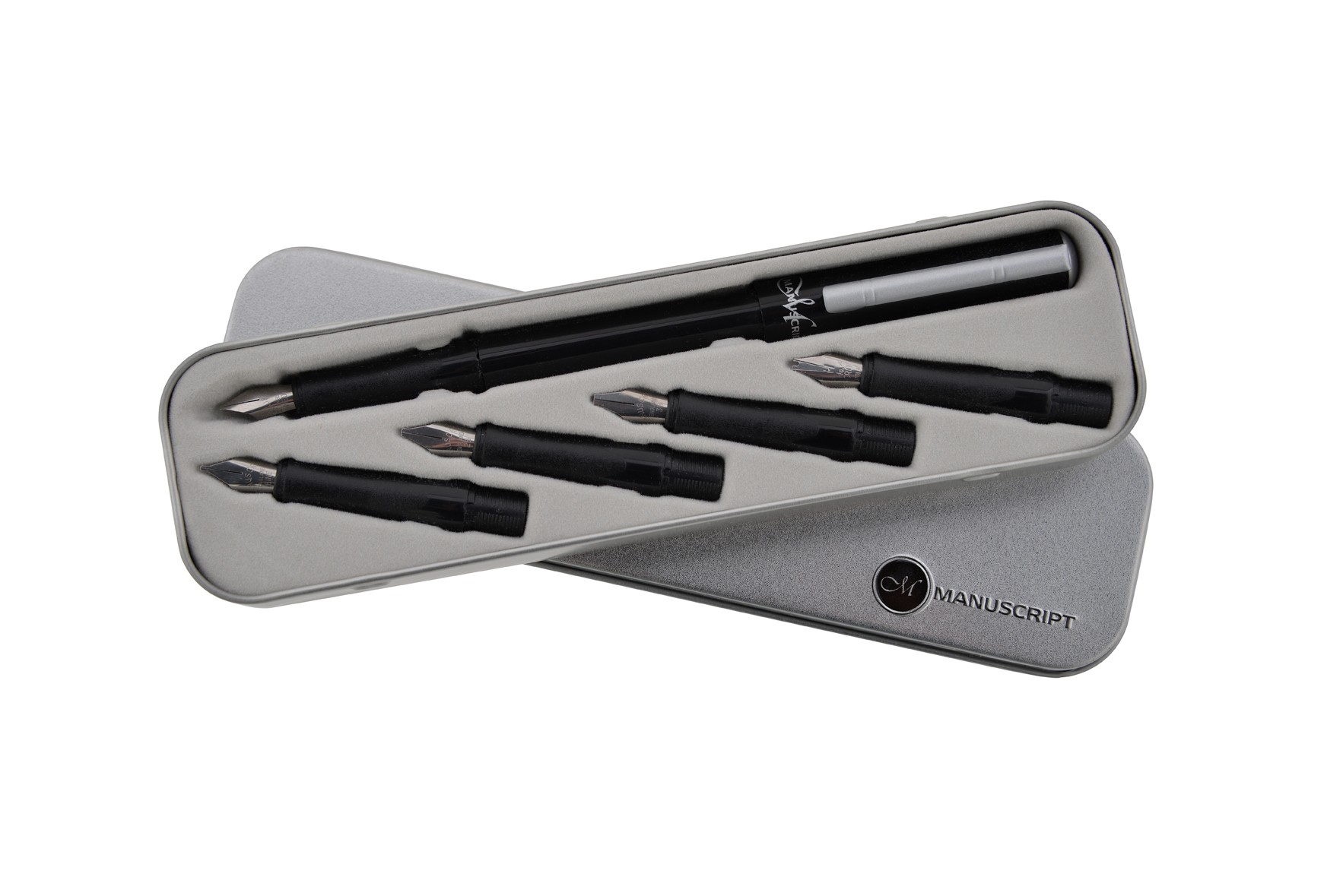 The perfect gift set ideal for left-handed fountain pen calligraphy and every day writing. Create italic calligraphy and practice lettering with ease with this diverse set. Made in the United Kingdom, this 12 piece set includes the following: