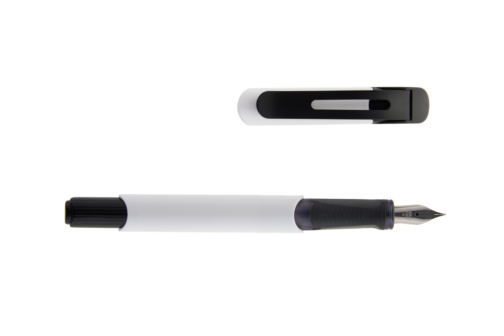 Built for comfort and designed for style, the Manuscript Curve Fountain pen is premium pen for all disciplines of writer. With a smooth ink flow, this pen promises a quality finish. This complete Manuscript Curve set features three nibs - a 1.1mm italic nib, a 1.6mm broad nib and a iridium handwriting nibs, all easy to attach. A smooth body in white and a comfortable black grip on every nib makes this pen the ideal writing tool for any task or creativity.