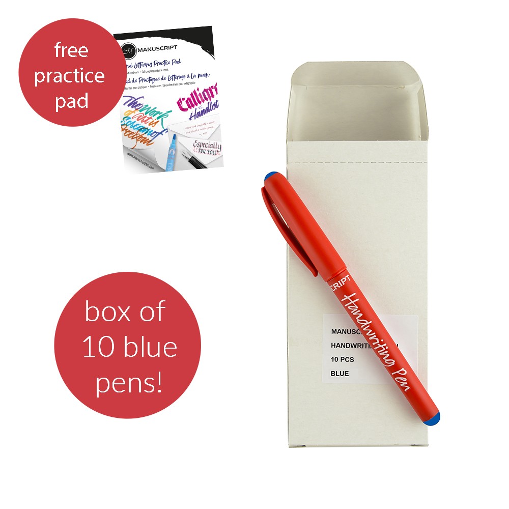 The blue ink is washable and works with Manuscript's Ink Eraser.