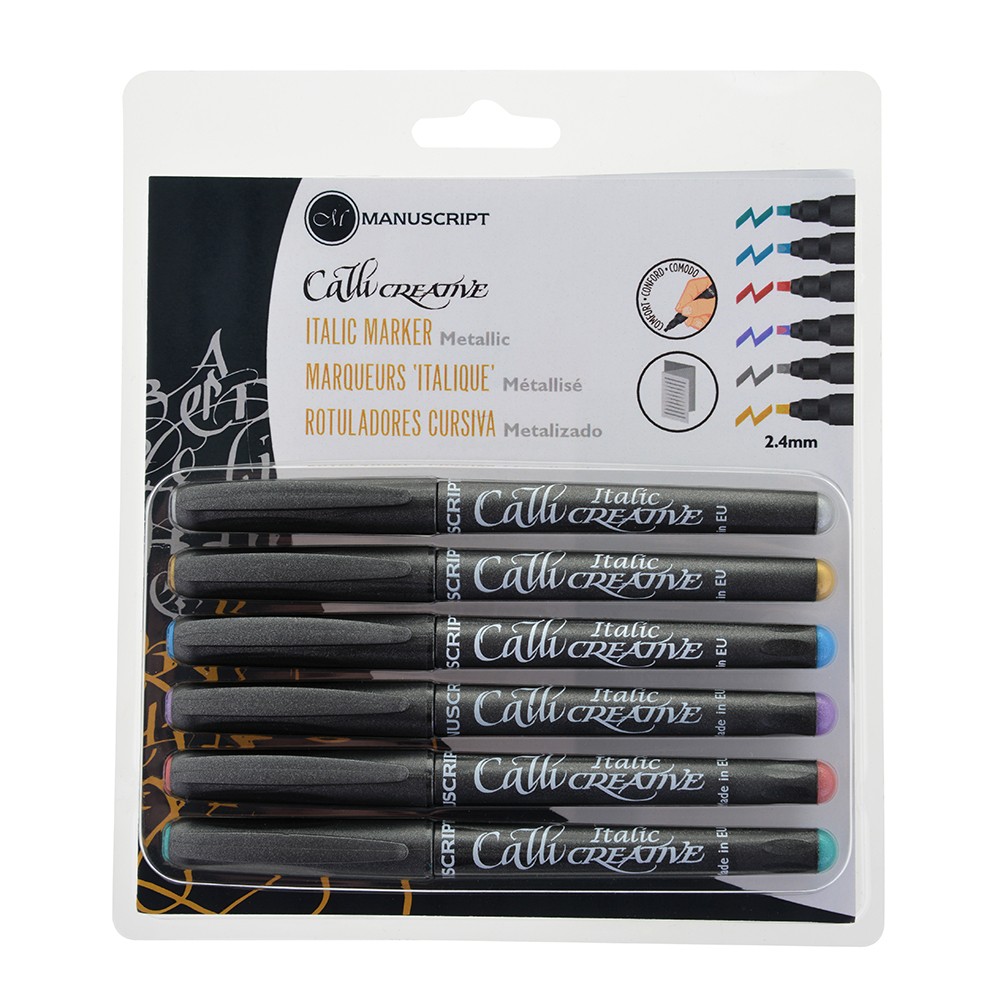 6 Callicreative Metallic Italic Markers with a 2.4mm nib - Silver, Gold, Green, Purple, Pink, Turquoise